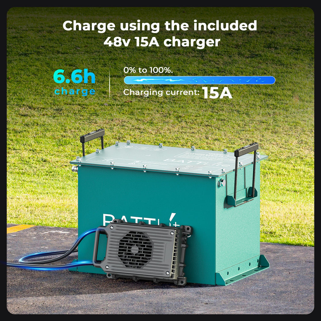 Using the recommended 15 Amp (15A) charger, a full charge cycle takes