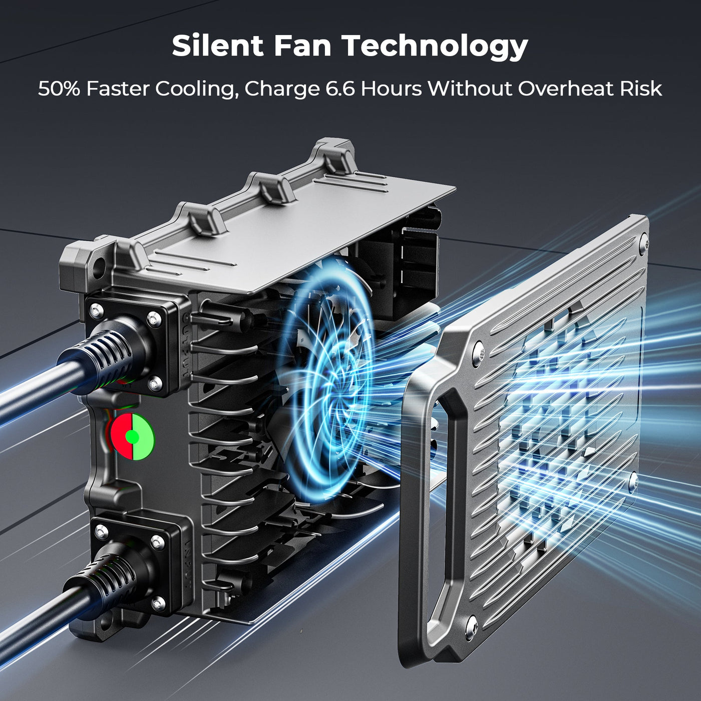 Includes 48V 15A fast charger (15A charging current) achieving 0%-100% in 6.6h – engineered with thermal safeguards for efficient course operations under open skies.